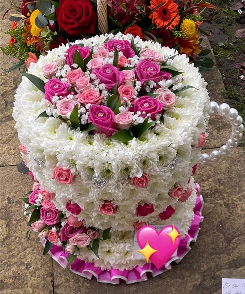 Cup and saucer Funeral Tribute Pinks zoom 2