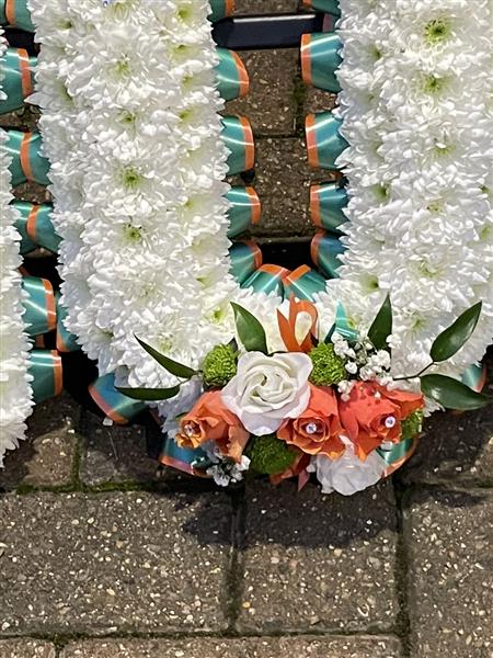 Beautiful tribute for a beloved mum. Available with a ribbon or foliage edge